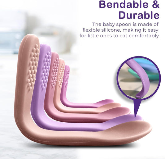Baby Spoons First Stage Silicone Baby Spoon – Self Feeding Baby Utensils – Infant Spoons First Stage Baby Feeding Spoon - Soft & Gentle on Gums - BPA Free Silicone Baby Spoons Set